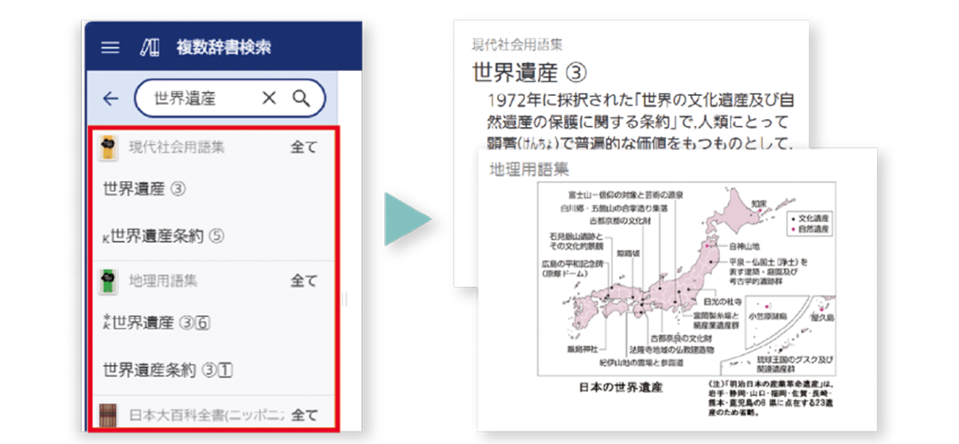 複数の辞書・参考書から一度に検索