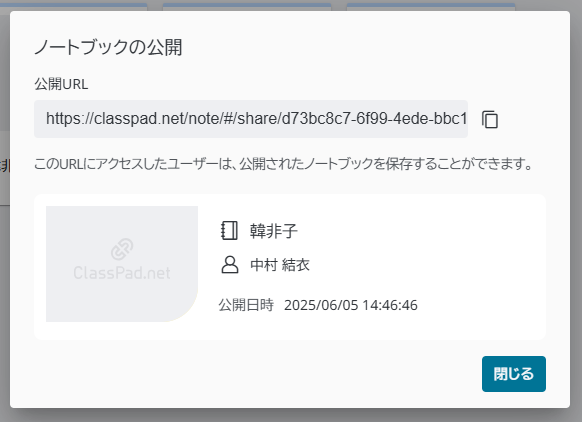 URLをシェアすることでClassPad.netを使用しているユーザー間のノート共有が可能
