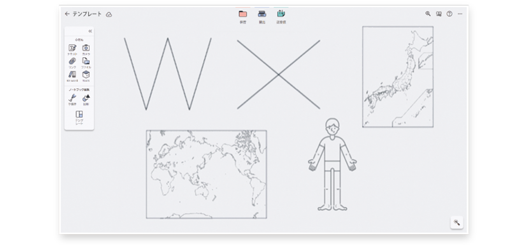 紙のノートのような操作感と豊富なふせん機能で自由に思考を整理・表現できます。
