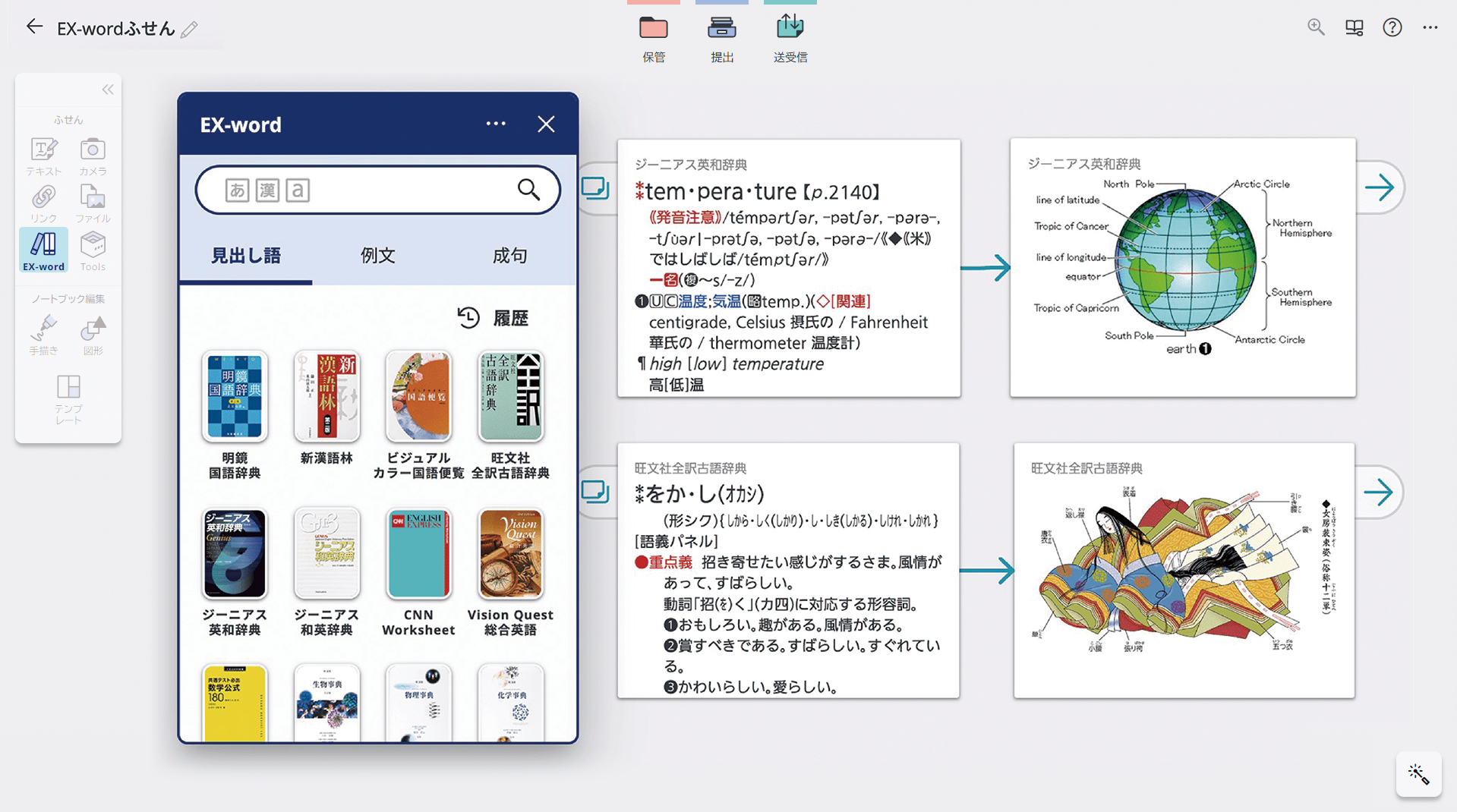 さらにデジタルノートから直接辞書検索でき、学びがより効率的で便利になります。