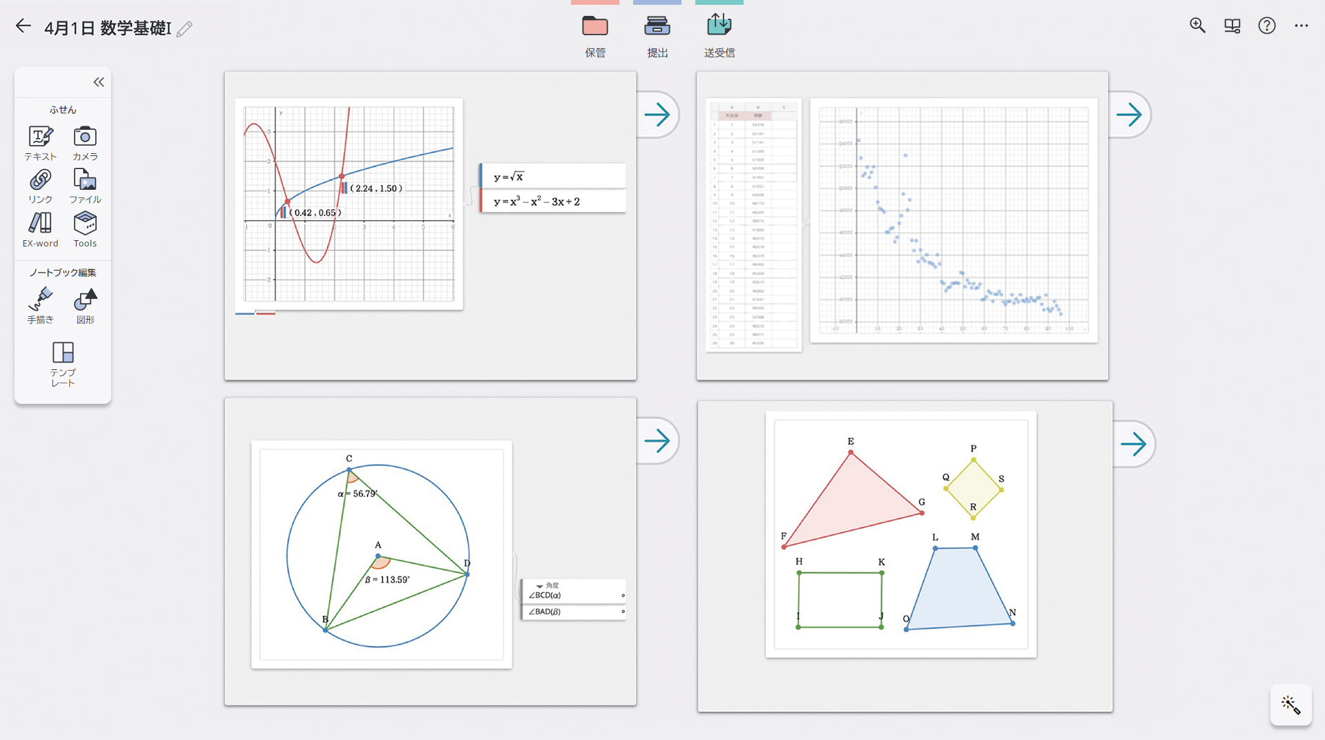 数学ツールで描画したグラフや図形を添付