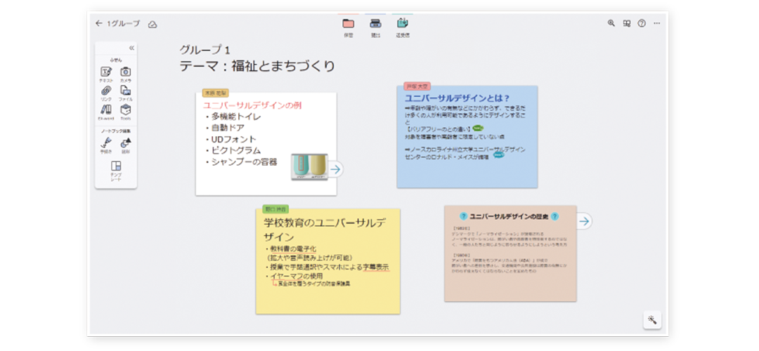 紙のノートと変わらない操作感を実現し、多彩なふせん機能を用いて自由自在に思考をまとめ、表現できます。