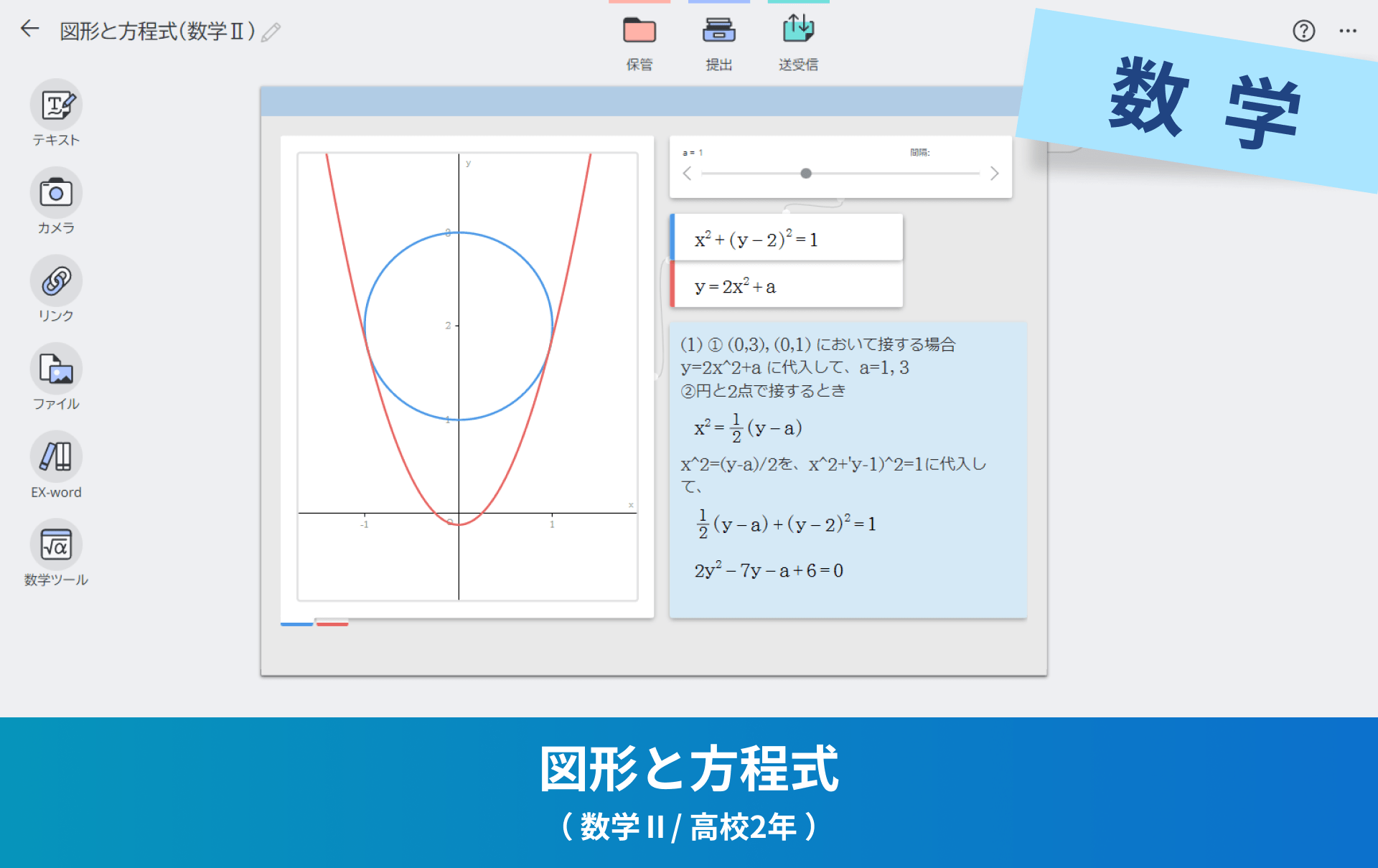 簡単な操作で作成したグラフや図形を使い視覚的に解説することで、複雑な数学の問題の理解を促進します。