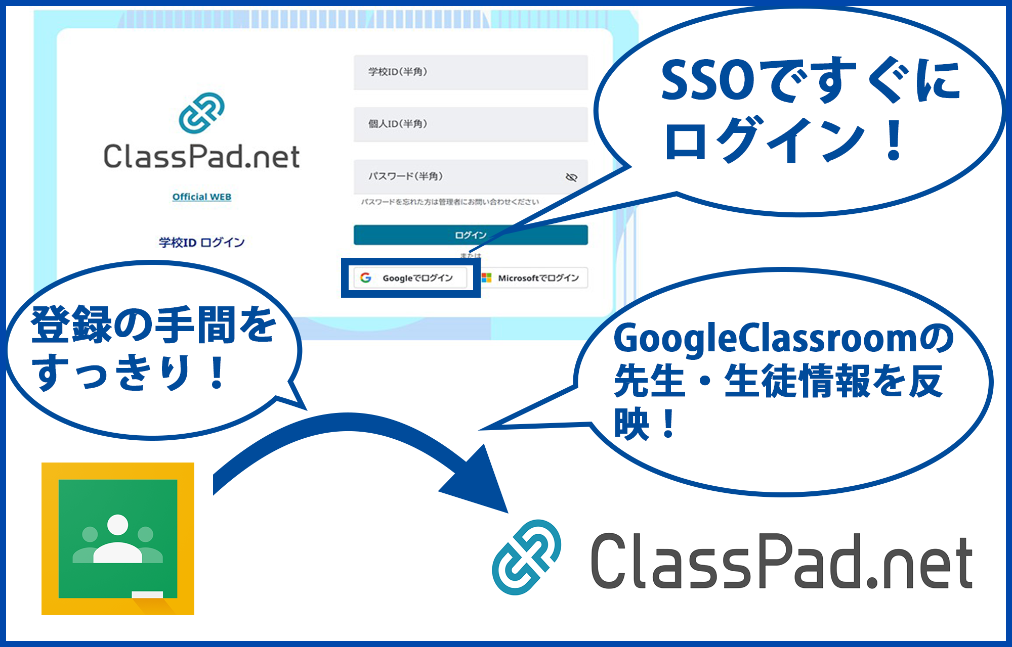 煩雑なアプリ管理やパスワード管理の負担を軽減し、授業をもっとスムーズにします。