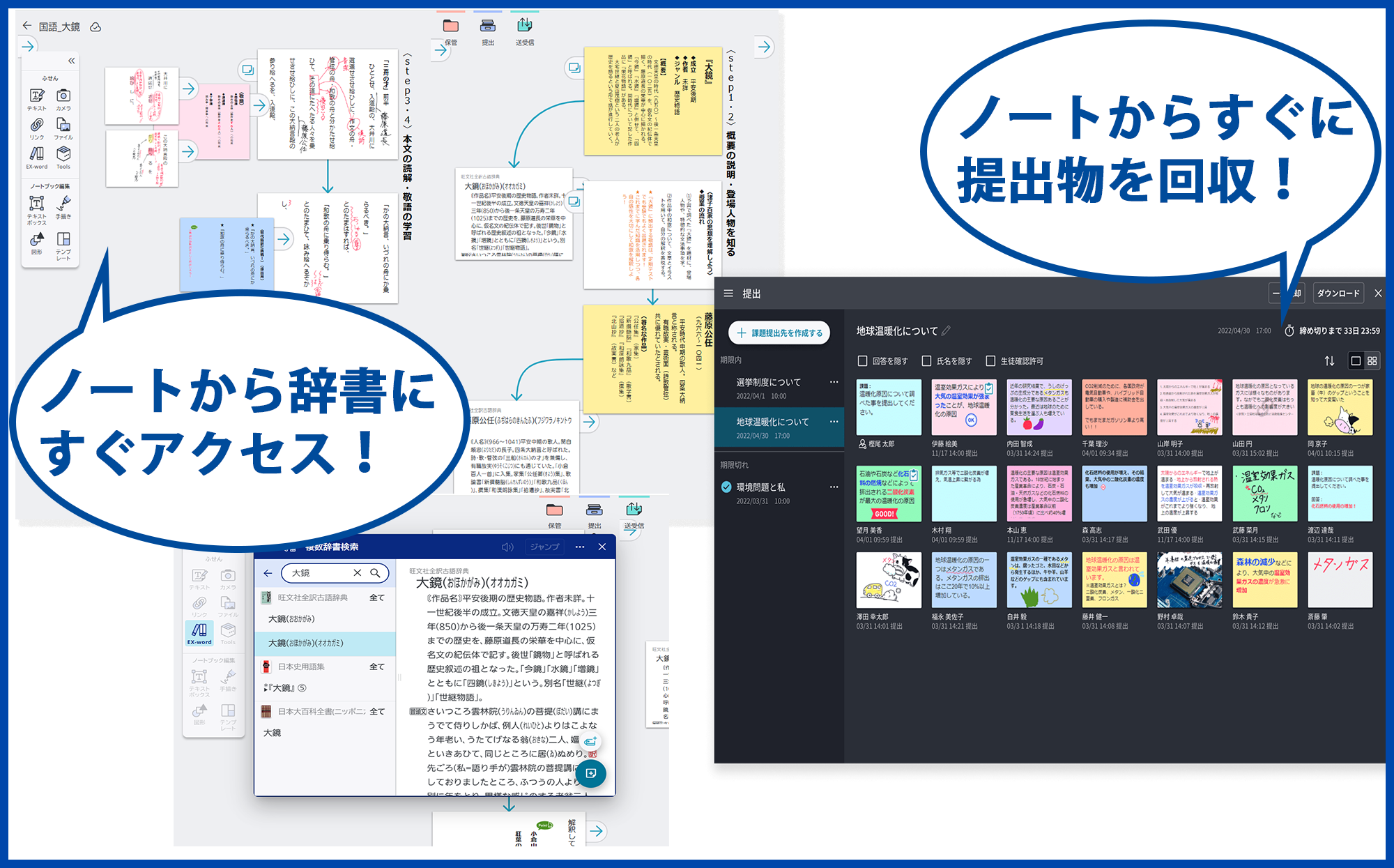 辞書・デジタルノート・学習ツール・授業支援が1つのアプリで済むから生徒の机上もすっきり!